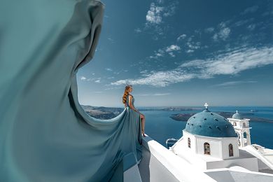 Select your ideal look for stellar Santorini dress photos